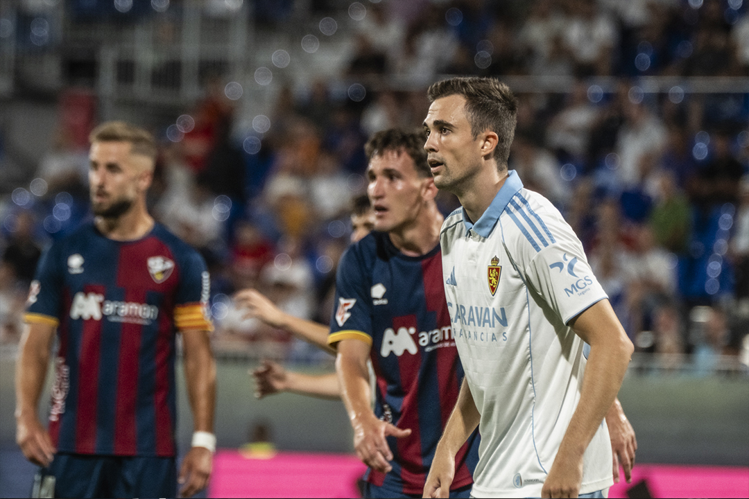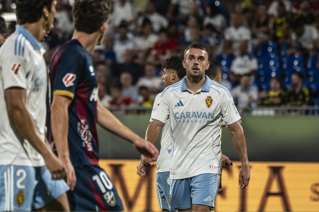 El partido arrancó con dominio del Huesca, que se adelantó en el minuto 13 gracias a un autogol del canterano Juan Sebastián, quien desvió un centro de Liberto, hacia su propia portería defendida por Obón, demostrando que en el fútbol puedes hacer gol sin ni siquiera tirar a puerta. Suele ser más complejo construir un sistema defensivo infranqueable para el rival, que acertar con el gol. Esta verdad del fútbol se le podría plantear al Real Zaragoza de la temporada pasada para tomar la medida al drama que puede suponer un aparato defensivo insuficiente en toda una temporada, de ahí la insistencia de Gabi en la necesidad de reforzar la línea defensiva sin escatimar ni demorarse.